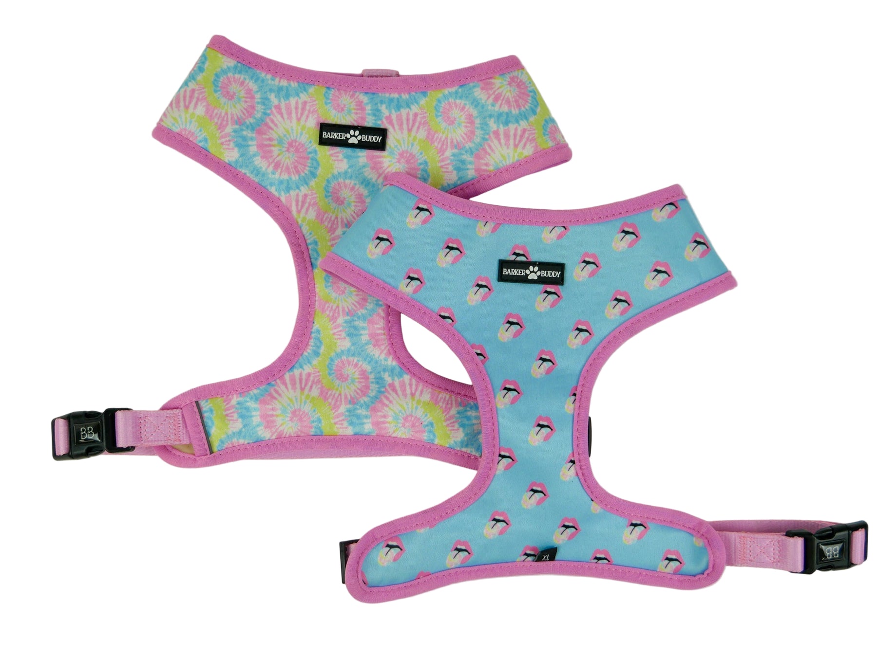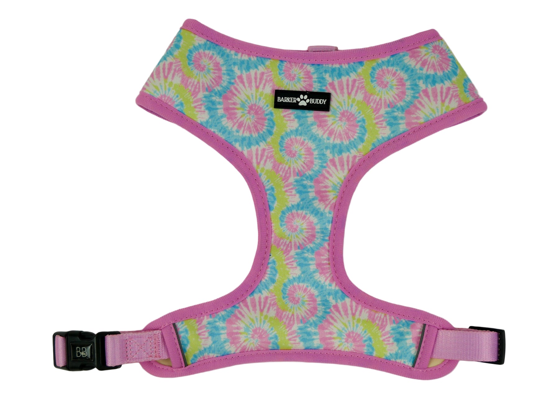 Bright & vibrant, our custom tie-dye harness is two great prints in one reversible harness!